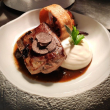 - Raviole de porcelet et champignons noirs, sur une bisque de langouste
